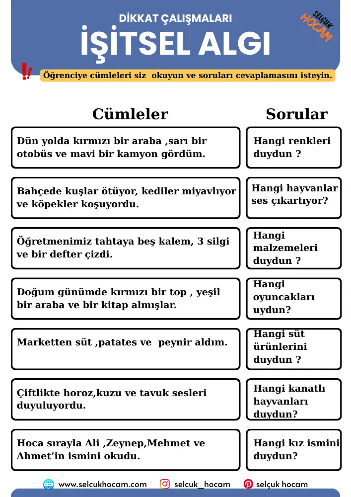 İŞİTSEL DİKKAT ÇALIŞMALARI
